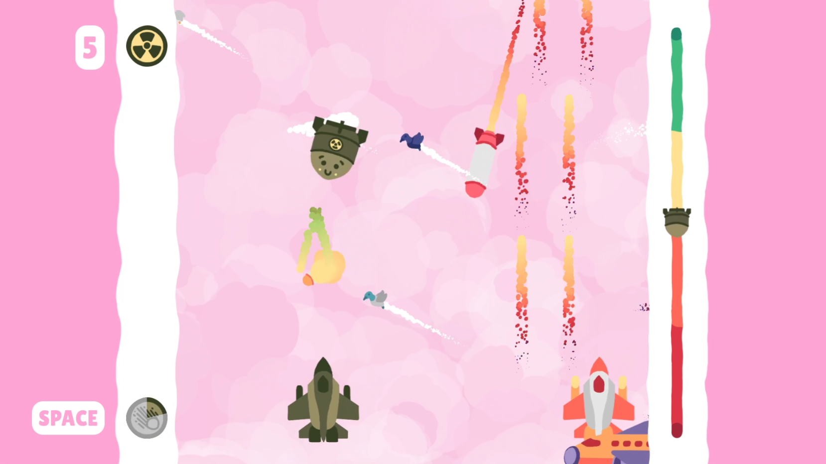 LIL' NUKE'M is a cutesy bullethell for those who want to cause mass extinction via nuclear annihilation. With help from "Lil' Nukem," work together to avoid enemies and obstacles aimed at stopping your destruction. Become progressively stronger as a duo, grabbing new abilities and stat boosts with each city eroded to void. Do you have what it takes to end all life?